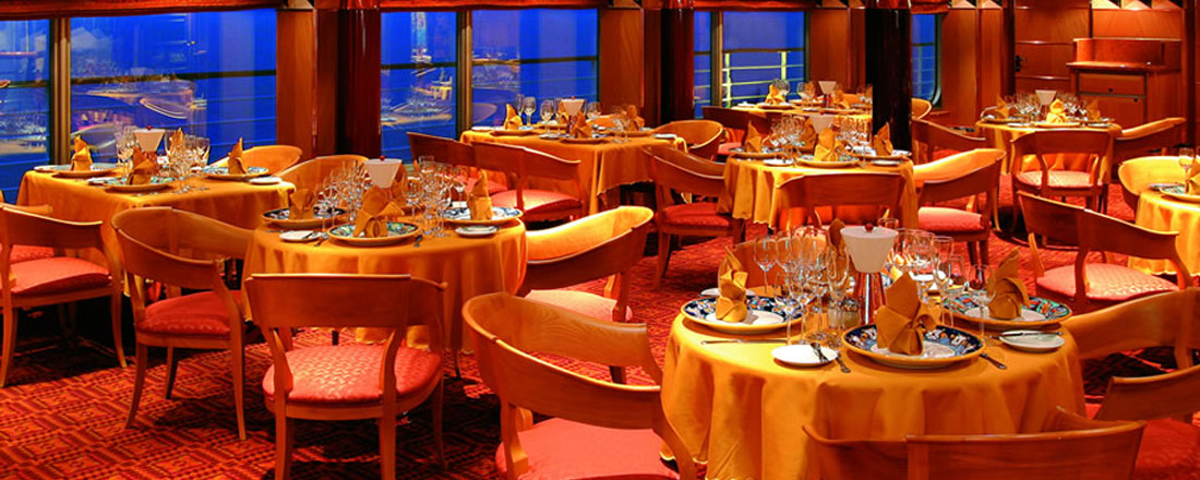 Skibet har 14 dæk, hvoraf dæk 1 til 14 er for passagerer. I forenden, midten og bagenden ligger skibets elevatorer. Dæk 3 er indgangsdæk med reception, udflugtssalg, business center og atrium. På dæk 3 og 4 findes skibets hovedrestauranter med a-la-carte servering. Disse er inkluderet i dit krydstogt. Derudover findes der 3 specialrestauranter ombord, hvor du bl.a. kan få en god steak eller en pizza. På disse restauranter betaler du en merpris.