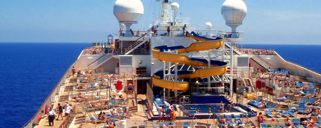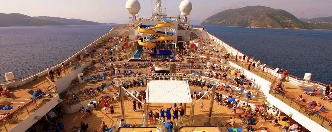 På dæk 10 ligger det store indbydende soldæk med poolområde og liggestole.