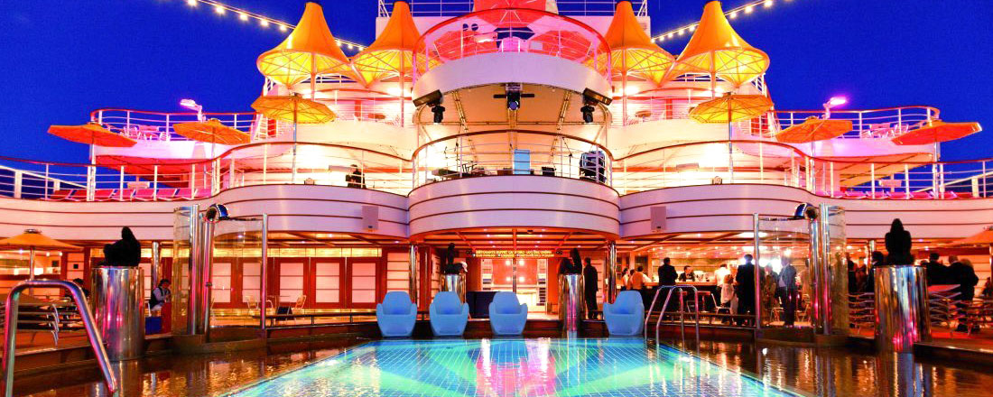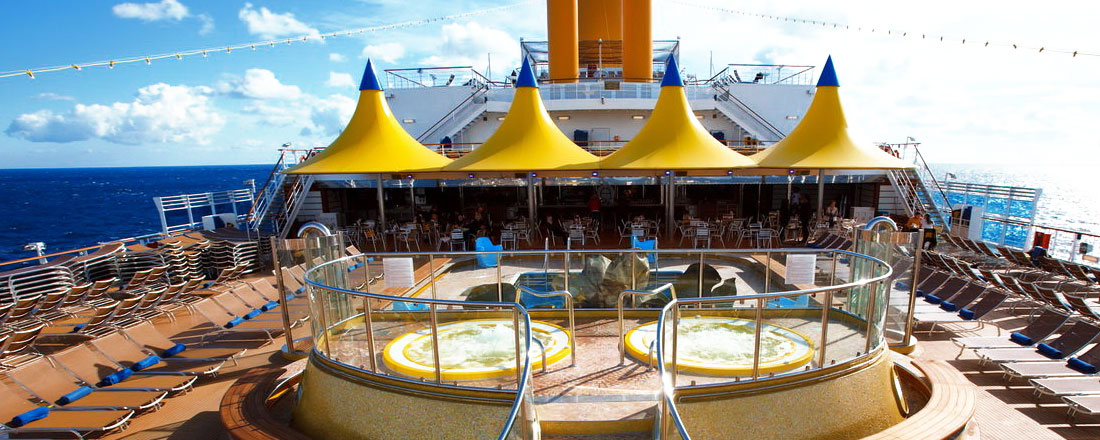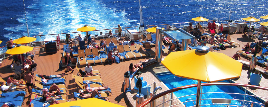 På dæk 11 ligger det store indbydende soldæk med poolområde og liggestole.