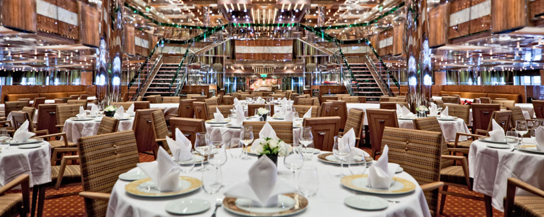 Skibet har 14 dæk, hvoraf dæk 1 til 14 er for passagerer. I forenden, midten og bagenden ligger skibets elevatorer. Dæk 3 er indgangsdæk med reception, udflugtssalg, business center og atrium. På dæk 3 og 4 findes skibets hovedrestauranter med a-la-carte servering. Disse er inkluderet i dit krydstogt. Derudover findes der 3 specialrestauranter ombord, hvor du bl.a. kan få en pizza. På disse restauranter betaler du en merpris.