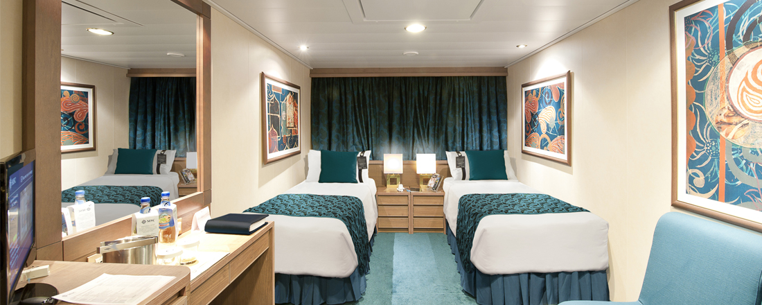 Det er muligt at købe familiekahytter, som oftest består af 2 kahytter ved siden af hinanden med forbindelsesdør imellem. Disse er dyrere end opredninger men også et godt alternativ, hvis man gerne vil have lidt ekstra plads. Derudover findes en håndfuld specialkahytter, som hører til i den dyrere ende. Disse er for gæster som gerne vil forkæle sig selv og enten vælger Aurea Suiter eller Yacht Club. Bemærk, at når man bor i enten Aurea Suiter eller Yacht Club, medfølger visse ekstra fordele ombord på skibet - herunder adgang til særligt eksklusive områder. Læs mere om Yacht Club her - klik