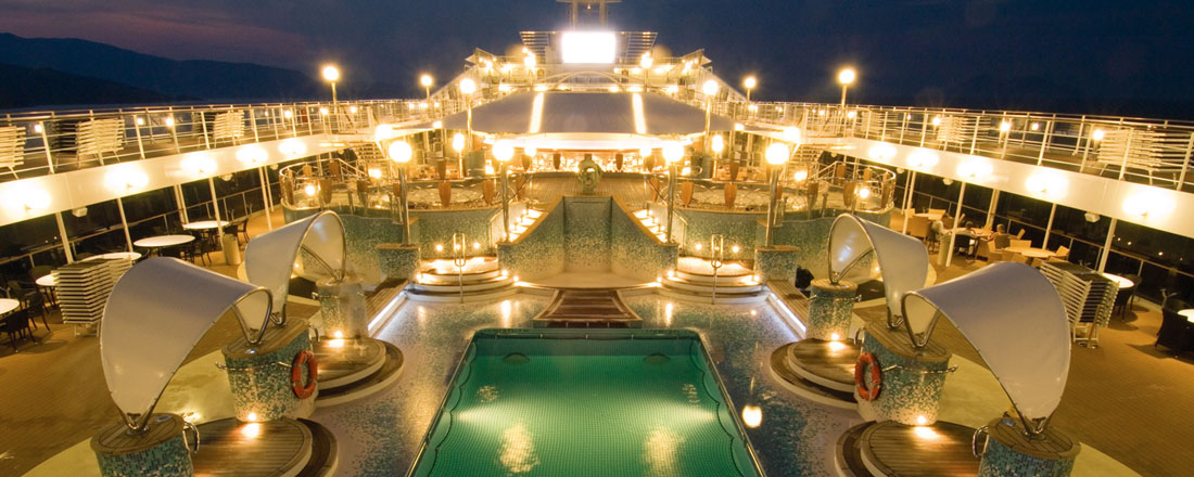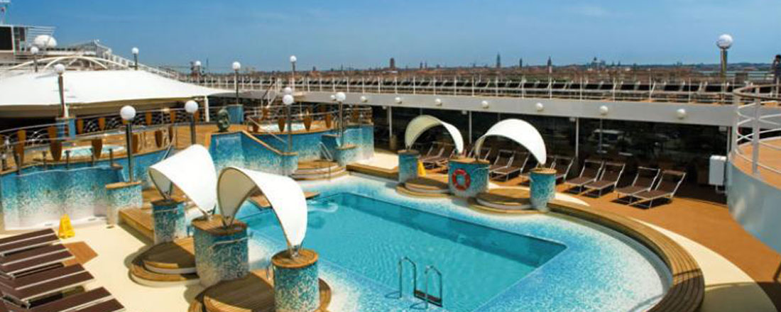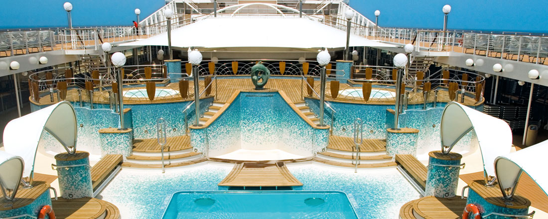 På dæk 13 finder du poolen med Blue Marlin Bar samt spa-området. I bagenden er den store buffetrestaurant, som også er inklusive i rejsens pris. På dæk 14 ligger børneklubben samt forskellige aktiviteret som 4D-biograf, bowling og shuffleboard. På dæk 16 finder du soldækket samt sportsområdet.