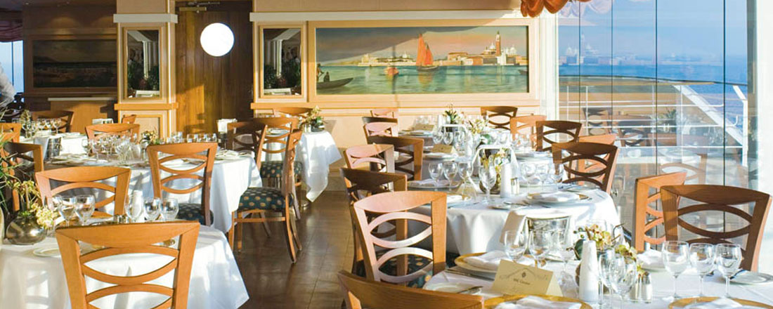 Skibet har 16 dæk, hvoraf dæk 5 til 16 er for passagerer. I forenden, midten og bagenden ligger skibets elevatorer. Dæk 5 er indgangsdæk med reception. På dæk 5 og 6 findes skibets hovedrestauranter med a-la-carte servering. Disse er inkluderet i dit krydstogt. Der findes 2 specialrestauranter, hvor man kan få japansk mad eller en pizza. På disse restauranter opkræves en merpris.