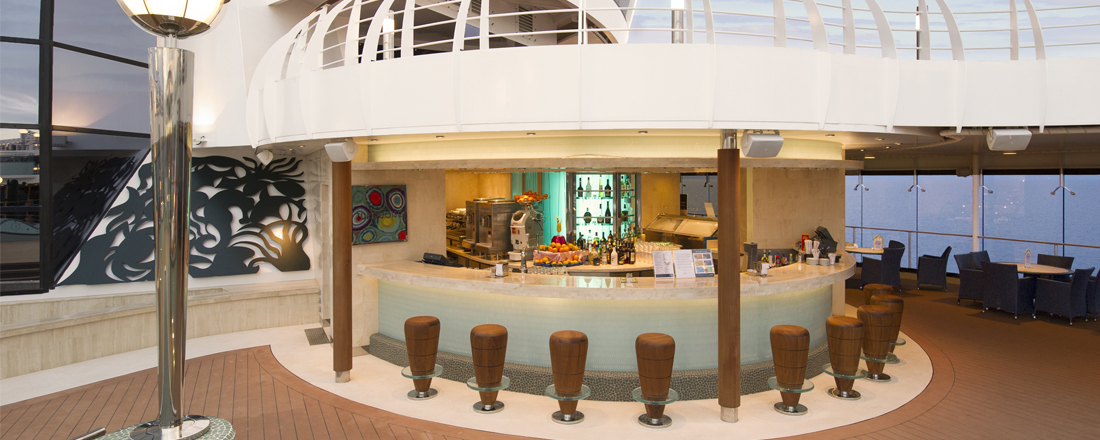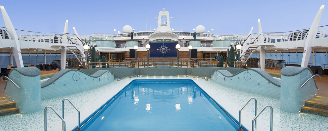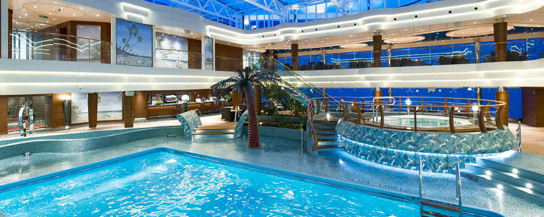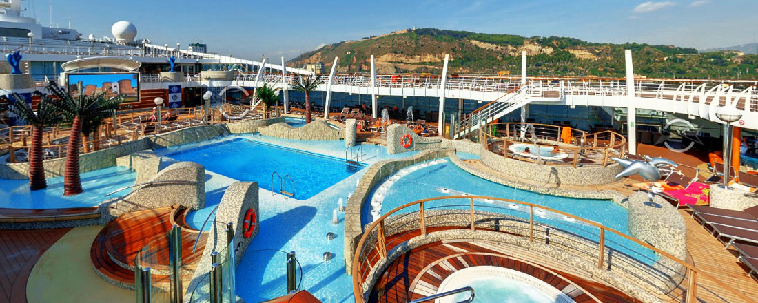 På dæk 14 ligger det indbydende soldæk med poolområde med pool, aqua park og liggestole. I bagenden er den store buffetrestaurant, som også er inklusive i rejsens pris. På dæk 15 er der i bagenden et hyggeligt udendørs barområde med en ekstra pool. På dæk 16 finder du forskellige aktiviteteer som F1-simulator, 4D-biograf samt shuffleboard.