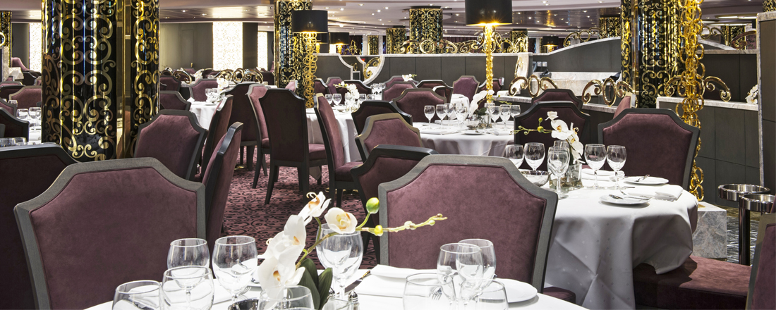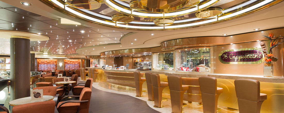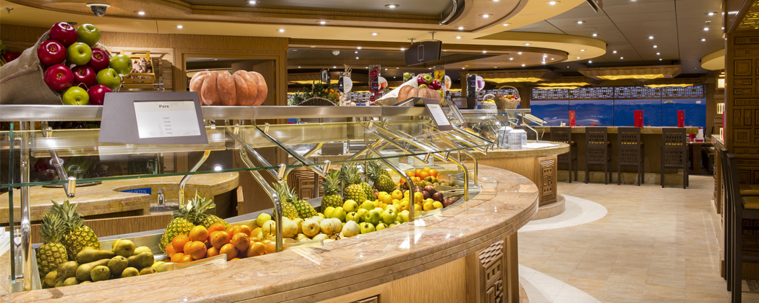 Skibet har 18 dæk, hvoraf dæk 5 til 18 er for passagerer. I forenden, midten og bagenden ligger skibets elevatorer. Dæk 5 er indgangsdæk med reception. På dæk 5 og 6 findes skibets hovedrestauranter med a-la-carte servering. Disse er inkluderet i dit krydstogt. Derudover findes der 10 specialrestauranter ombord, hvor du bl.a. kan få mexicansk mad, en god steak eller en pizza. På disse restauranter betaler du en merpris.