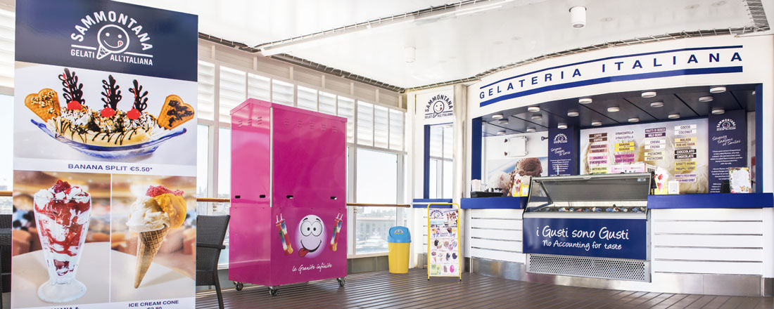 På dæk 6 finder du forskellige butikker med salg af accessories og souvenirs samt Sanremo Casino. På dæk 5 og 6 finder du i forenden den store teatersal med musik og shows.