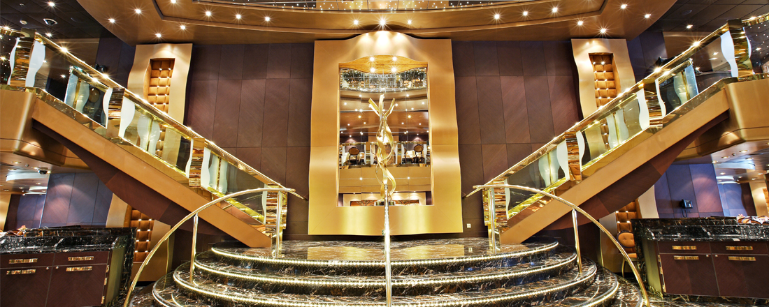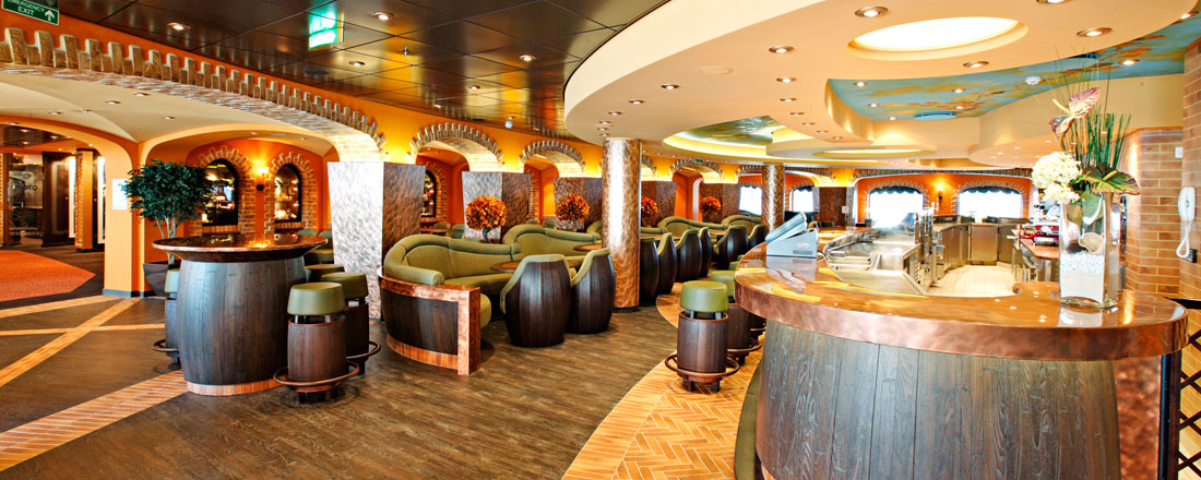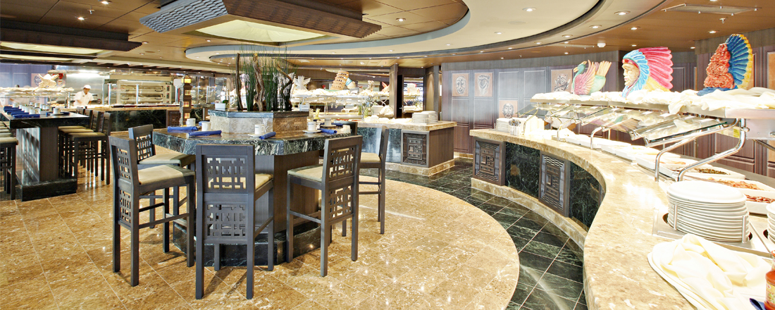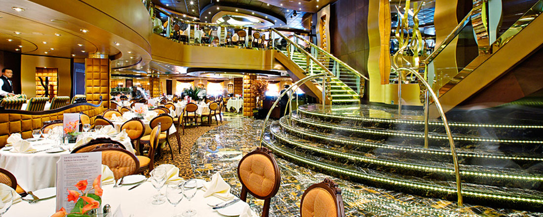 Skibet har 18 dæk, hvoraf dæk 5 til 18 er for passagerer. I forenden, midten og bagenden ligger skibets elevatorer. Dæk 5 er indgangsdæk med reception og udflugtssalg. På dæk 5 og 6 findes skibets hovedrestauranter med a-la-carte servering. Disse er inkluderet i dit krydstogt. Derudover findes der 5 specialrestauranter ombord, hvor du bl.a. kan få mexicansk mad eller en pizza. På disse restauranter betaler du en merpris.