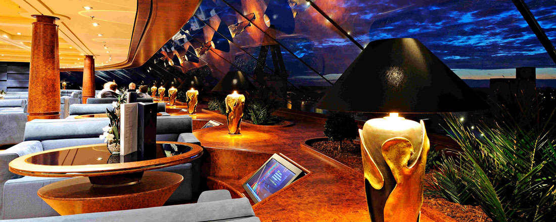 På dæk 6 finder du forskellige butikker med salg af accessories, og det er også her, du finder Royal Palm Casino. På dæk 6 og 7 finder du i forenden den store teatersal med musik og shows. Det er også på dæk 6 og 7, du finder de forskellige specialrestauranter.