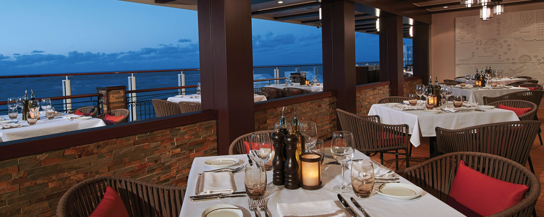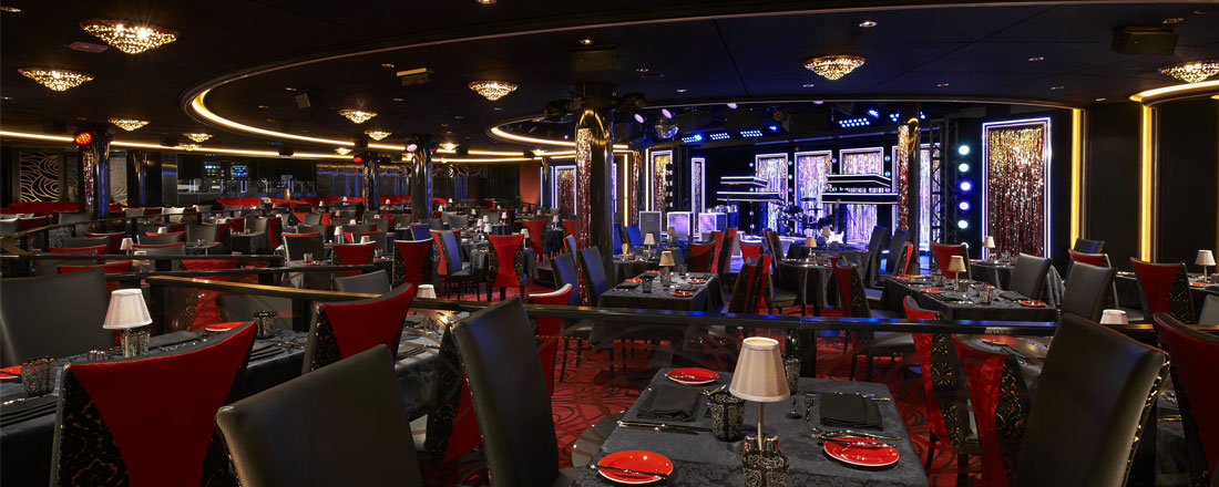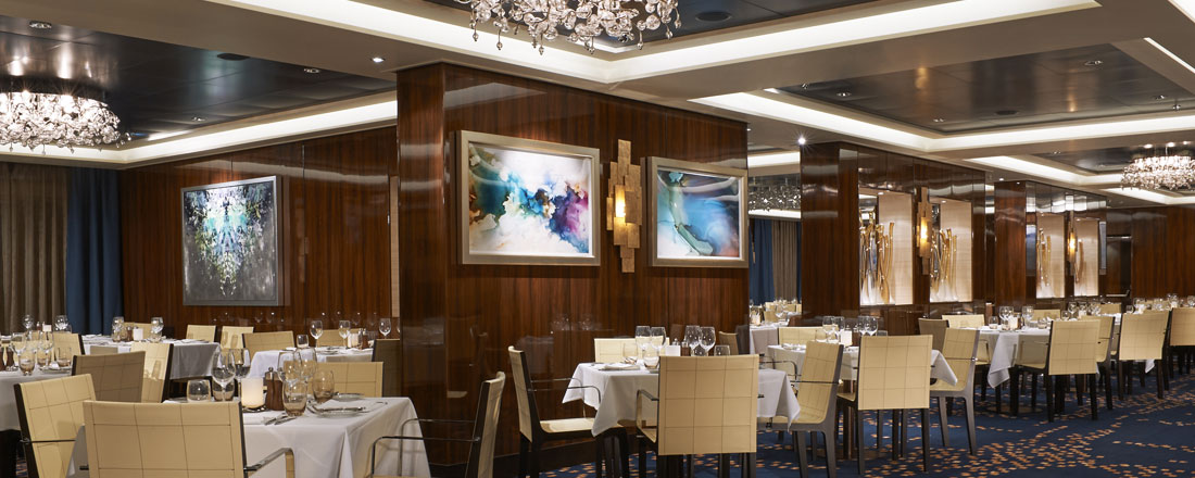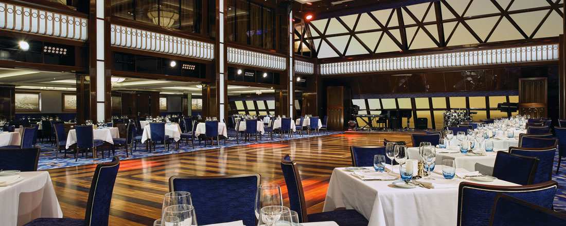 Hver aften kan du frit vælge at spise i én af de tre hovedrestauranter, Savour, Taste eller The Manhattan Room. Alle tre har en stilfuld indretning, der er både moderne og klassisk, mens atmosfæren er afslappet, og a la carte-kortet skifter dagligt, så du får forskellige kulinariske oplevelser, selvom du spiser det samme sted mere end én gang. Garden Cafe er skibets buffetrestaurant, hvortil du også har adgang. Her serveres store, inspirerende buffetter morgen, middag og aften, så uanset hvad du har lyst til, er det næsten garanteret, at du kan finde det her. Endelig har du også muligheden for et mere casualt aftenmåltid på O'Sheehans Bar & Grill, hvor du kan få ægte comfort food som fish 'n' chips og shepherd's pie og skylle det ned med en kold fadøl, mens du følger en fodboldkamp på tv eller tager et spil dart.