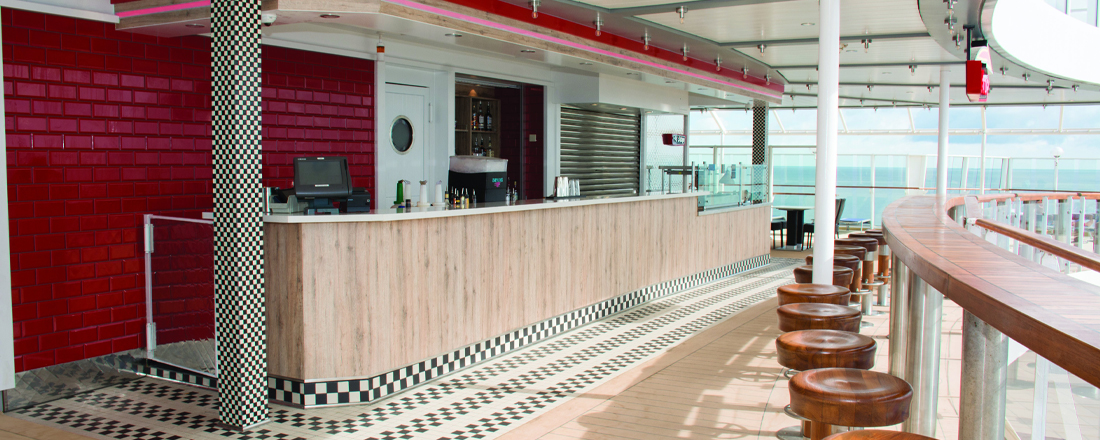 Whiskyelskere kan slå sig ned på Malting's Beer & Whiskey Bar og nyde en sjus on the rocks, og hvis du derimod holder mere af bobler, skal du besøge Magnum's Champagne & Wine Bar, hvis interiør er inspireret af Art Noveau-stilen og emmer af nostalgi. Foretrækker du en klassisk cocktail, skal du besøge Shakers Martini & Cocktail Bar, der kan trylle stort set hvilken som helst drink frem til dig, mens Sugarcane Mojito Bar frister med lækre mojitos i utallige eksotiske varianter. Atrium Café & Bar er beliggende i skibets centrum, hvor der altid er mennesker at kigge på og en god stemning. Det er der også om aftenen i Bliss Ultra Lounge og Spinnaker Lounge, hvor der danses til festlig musik - i sidstnævnte endda med en formidabel panoramaudsigt over havet. Ude på dækket finder du The Pit Stop, der har et racerbilstema og serverer drikkevarer dagen lang.