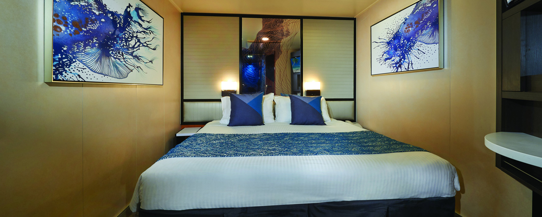 Kahytten til dig, der kun bruger kahytten til at sove og skifte tøj eller bare hellere vil bruge penge på andet end indkvarteringen. Kahytterne er beliggende midt i skibet og er uden vinduer, men er ellers yderst komfortable. Plads til 2-4 personer afhængig af kategori.