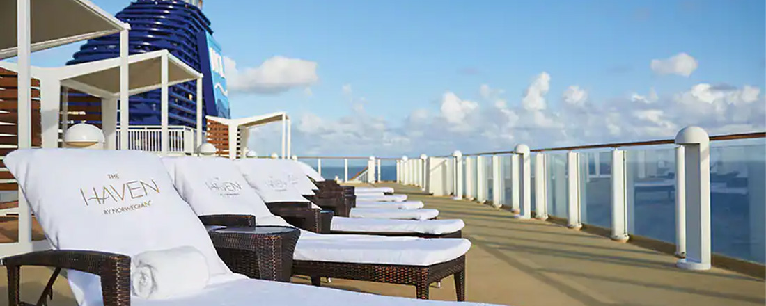 Skal oplevelsen opgraderes, vil et cruise i skibets The Haven afdeling være en unik oplevelse med service bedre end topklasse. Her får du din helt egen butler, suite, adgang til eksklusivt Courtyard område med kolde håndklæder, frisk frugt og meget mere. Ønsker du en overvældende rejse, hvor du ikke er omringet af så mange mennesker, og gerne vil have creme de la creme, er The Haven skræddersyet til dig.