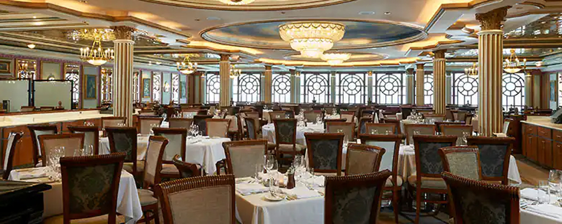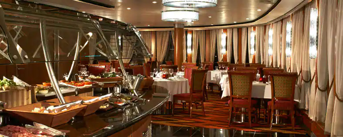 Hver aften kan du frit vælge at spise i én af de to hovedrestauranter, Aqua og Versailles. De har begge en stilfuld indretning, der er både moderne og klassisk, mens atmosfæren er afslappet, og a la carte-kortet skifter dagligt, så du får forskellige kulinariske oplevelser, selvom du spiser det samme sted mere end én gang. Garden Cafe er skibets buffetrestaurant, hvortil du også har adgang. Her serveres store, inspirerende buffetter morgen, middag og aften, så uanset hvad du har lyst til, er det næsten garanteret, at du kan finde det her. Frisklavede nudler, lækre wokretter og autentiske supper serveres på den asiatiske restaurant Ginza. Endelig har du også muligheden for et mere casualt aftenmåltid på O'Sheehans Bar & Grill, hvor du kan få ægte comfort food som fish 'n' chips og shepherd's pie og skylle det ned med en kold fadøl, mens du følger en fodboldkamp på tv eller tager et spil dart. I løbet af dagen kan du også gå på Topsiders Bar & Grill, hvor du kan nyde havudsigten sammen med burgere og hot dogs.