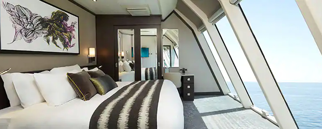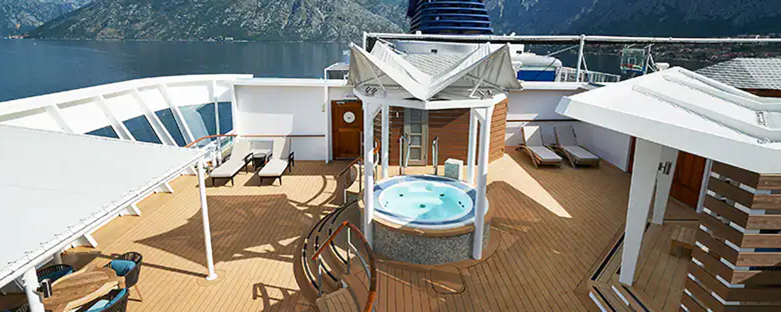 Suiterne byder på lidt ekstra. De er væsentlig større end balkonkahytterne og mere rummelige samt er udstyret med ekstra komfortable senge og lækkert sengetøj. Alle er med egen balkon med bord og stole, så du kan sidde ude og nyde udsigten. Kahytterne har ligeledes siddeplads i form af en sofa. Du forkæles også med lidt lækkerier til ganen i kahytten, og du har adgang til 24-timers butlerservice. Kahytten til dig, der ønsker det bedste. Plads til 2-7 personer afhængig af kategori.