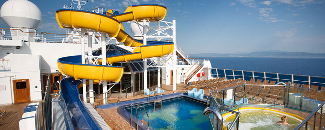 På dæk 9  er den store buffetrestaurant, som også er inklusive i rejsens pris. På dæk 10 finder du den store solterrasse og poolen.