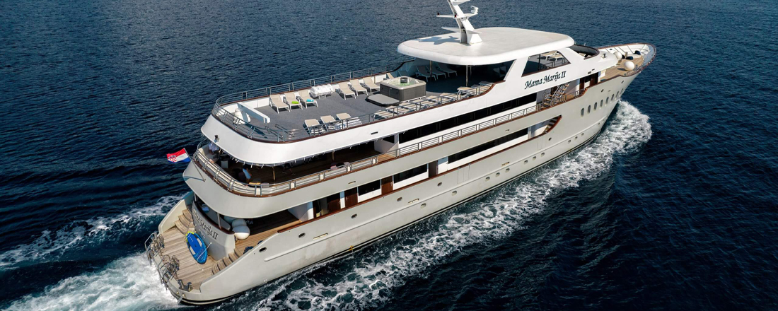Findes der en bedre måde at opleve Kroatiens smukke øer end om bord på et fantastisk yachtkrydstogt? Ombord på Mama Marija II nyder du livet i luksus, og når i kommer i havn, ligger den ene mere charmerende by efter den anden. Får du lyst til en dukkert, findes vandet ikke smukkere i Middelhavet end her. Havets beroligende vuggen og bølgernes lette skvulp er både søvndyssende og afslappende. Hvad mere kan man drømme om? M/S Mama Marija II er som et flydende luksushotel bygget i henhold til de nyeste EU standarder. Et elegant skib med al den nyeste teknologi - en ægte perle. Der er plads til 36 passagerer, hvilket skaber en god og intim afmosfære. På få dage har man styr på hvilke gæster, man klikker med. Der er 4 passagerdæk på skibet, hvor de 2 nederste er med kahytter, og de 2 øverste er velindrettede fællesområder.