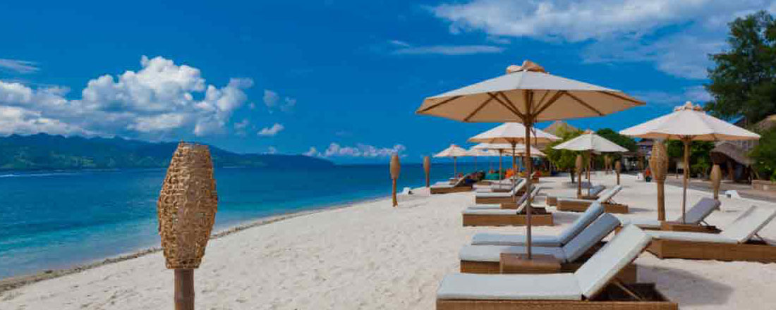 | Dag 7 - 10 | Morgenmad på hotellet. Dagene på Gili Trawangan er til fri disposition og er ren daseferie. Om Gili Øerne 3 små tropeøer Gili Air, Gili Memo og Gili Trawangan ligger mellem Bali og Lombok. I området findes en stor koncentration af havskildpadder. Her hersker en total "laid-back" atmosfære. Øerne er uden biler men med perfekte hvide strande og koralrev tæt på kysten. Under snorkelturen er der mulighed for at støde på djævlerokker. Gili Meno er den mest stille, mens de 2 andre øer er fantastiske på hver sin måde: Det er oplagt at tage på en sejltur rundt i området og ellers nyde de mange barer og restauranter på øen. |