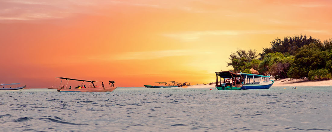 | Dag 6 | Morgenmad på hotellet. Kl. 08.00 er der transferservice fra Ubud til havnen hvorfra i skal sejle til paradisøen Gili Trawangan.. Køretiden er på knap 2 timer og det samme er sejlturen. Ankomst til Gili Trawangan midt på eftermiddagen.. Efter ankomst check in på valgte hotel, og herefter er dagen til fri disposition. |