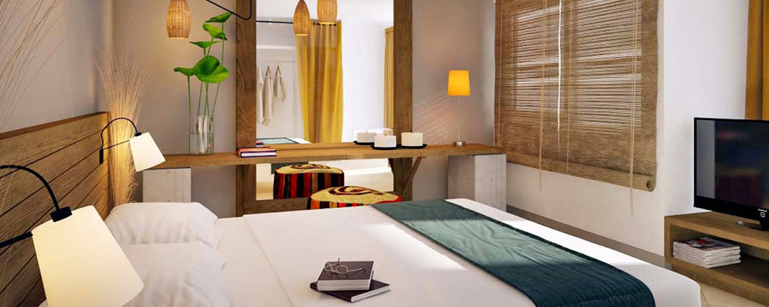 Selve hotellet består af 11 bygninger, og omkring det lille pool område vokser der bougainvillea, hibiscus, bananplanter og palmer. Nyd livet i et af hotellets komfortable værelser, hvor hvert værelse er designet i typisk mauritisk arkitektur med en moderne, men raffineret stil. Der tilbydes standard og familie værelser med plads til 5 personer (0-12 år) med egen balkon/terrasse, badeværelse med bruser og hårtørrer.