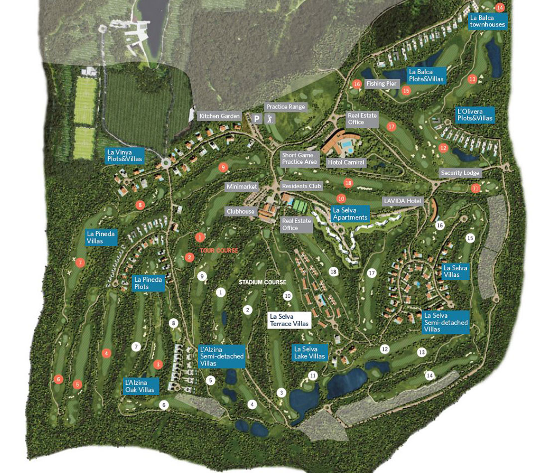 PGA Catalunya Resort har 2 fantastiske Championship Courses: Stadium og Tour Courses. De er begge smukke par 72 park- og skovbaner, som er designet af Angel Gallardo. Stadium Course er ret lang med smalle fairways og kuperede greens. Tour Course har samme kvalitet, men er lidt kortere og har lidt mere plads fra banens tees. Hvis du ønsker at bo ved banerne, er det 5* hotel Camiral dit første valg. Golfbanerne har eget klubhus, proshop og omfattende træningsfaciliteter. Desuden findes også en sublim restaurant i klubhuset, denne anbefaler vi at du besøger under dit ophold. Stadium Course er ved flere lejligheder valgt til den bedste golfbane i Spanien og kæmper ofte med Valderrama om diverse titler i landet.