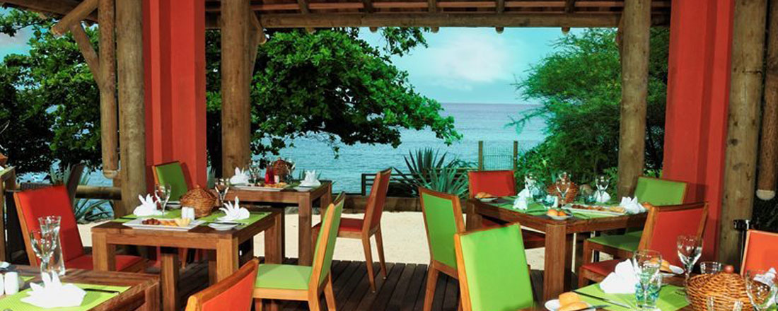 Indretningen er lækkert design i lokal stil. Stilfuldt og spændende. Servicen på stedet er i top og altid med et smil. Omkring poolen er der liggestole og en skøn udsigt over havet. Fra Baboon baren serveres drinks og små snacks ved poolen. Hotellets hovedrestaurant L´Escale byder på lækker morgenbuffer og italienske frokostretter. TIl aften skifter temaet ugen igennem. Restaurant La Dame Creole som er åben 5 dage om ugen byder på kreolske frokostretter og ændres til et lokalt steakhouse om aftenen. På stranden bliver du godt forsynet af beach baren Ti Baz og en let bistro med salat og snack fra LaPlaz (lukket søn- og mandage). Afslutningsvist byder hotellet på en af øens få vinkældre, som du er velkommen til at besøge....og måske vælge i...