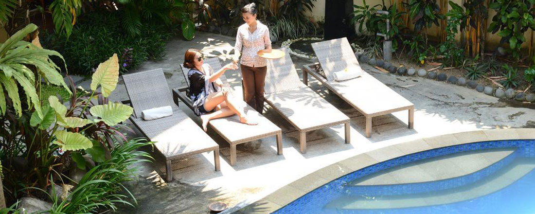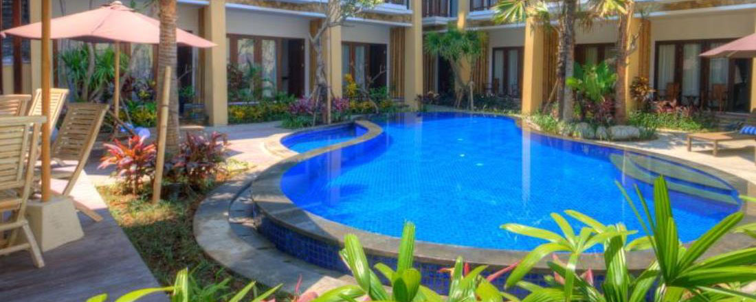 Lille charmerende hotel blot 10 min gang fra stranden i Kuta. Du bor lige i smørhullet med kort vej til både super shopping, et kæmpe udvalg af restauranter og hyggelige barer. Er du til natteliv så finder du ikke et bedre sted end Kuta. Hotellet har en hyggelig have med lille poolområde omgivet af grønne områder. Overalt er der fri wifi. Hotellet byder på en blanding af morderne interiør og balinesisk charme. Her er lille bar og restaurant. Nydelige værelser med aircondition, fladskærms-tv,  værdiboks og minibar. Endvidere er der balkon til alle værelser. Se mere.