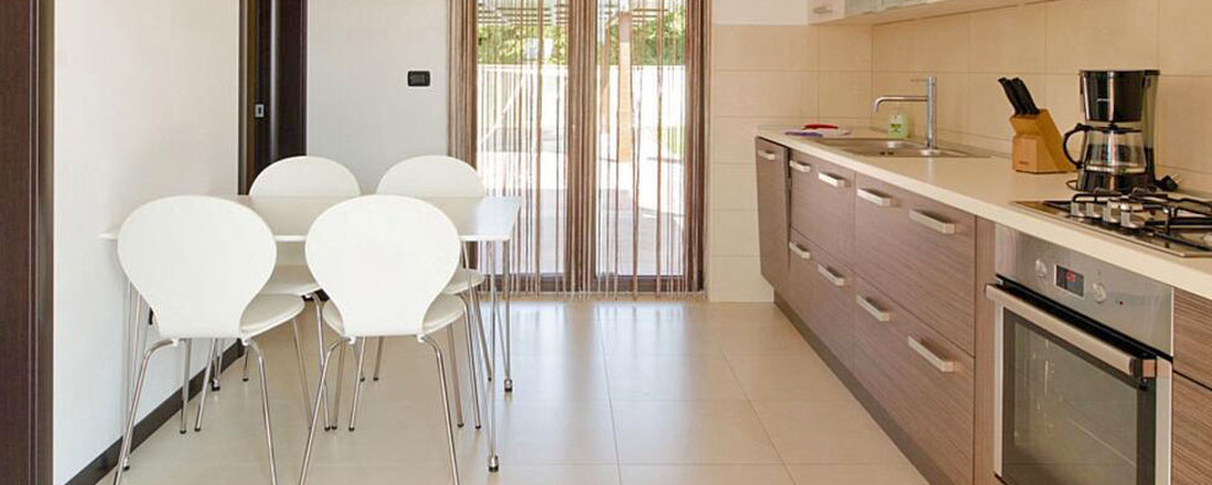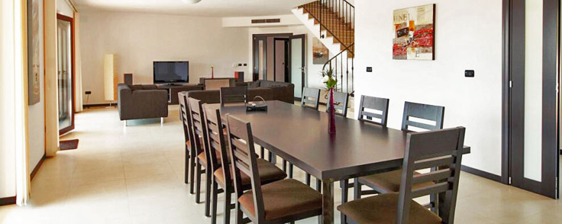 Villa Andrea har et boligareal på 230m2 til max 10 personer. Huset indeholder et køkken med lille spisebord. Køkkenenet er veludstyret med kaffemaskine, opvaskemaskine, mikrobølgeovn, vaskemaskine og køleskab. Stueetagen indeholder opholdstue med sofaer og et større spiseplads, Satellit-TV, DVD afspiller og gratis WI-FI. Der er direkte udgang fra stuen til den overdækkede terrasse. Huset har på 1. sal 4 soveværelser, hvor der er mulighed for ekstra opredning i de to. Desuden er der 3 badeværelser med toilet og bad. Villaen fremstår indbydende og moderne.