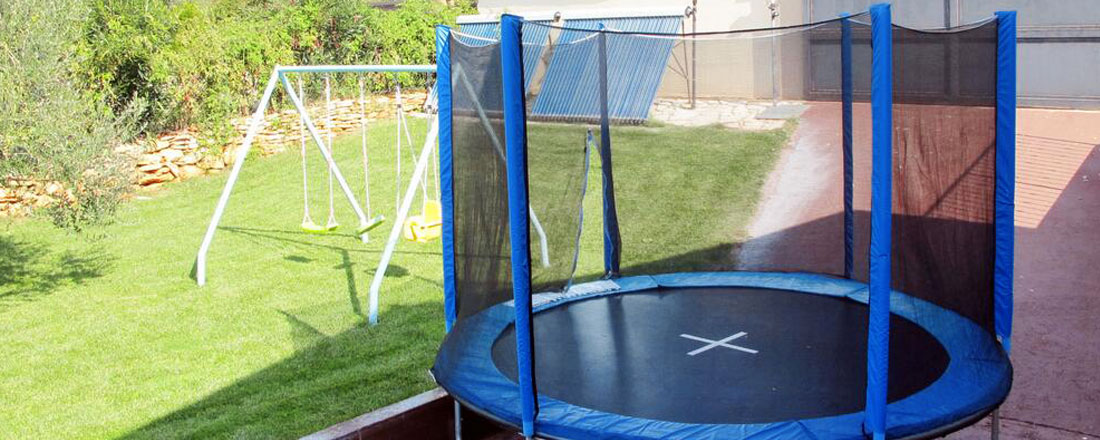 Grunden er stor med dejlig have. Haven består af græsplæne med trampolin, og diverse facilitter til boldspil og af et flisebelagt pool område med tilhørende solsenge, parasol og udendørs bruser. Her er mulighed for masser af solskinstimer ligesom der er et dejligt overdækket område til de der foretrækker skyggen.