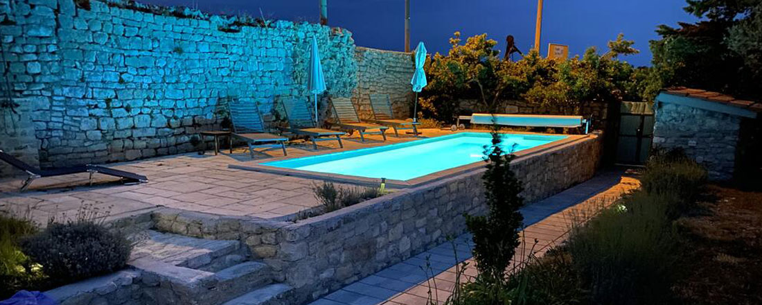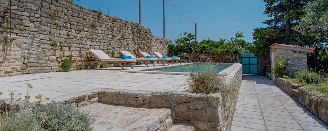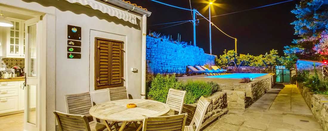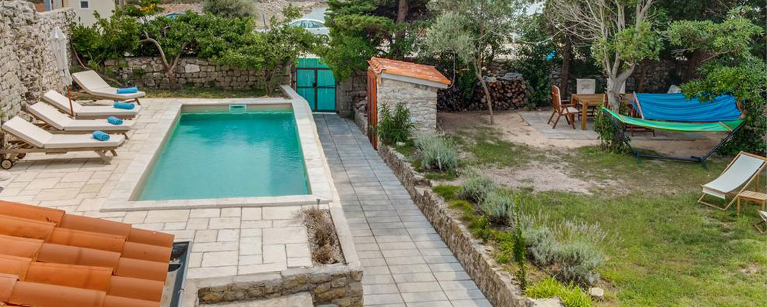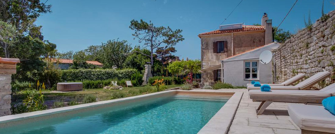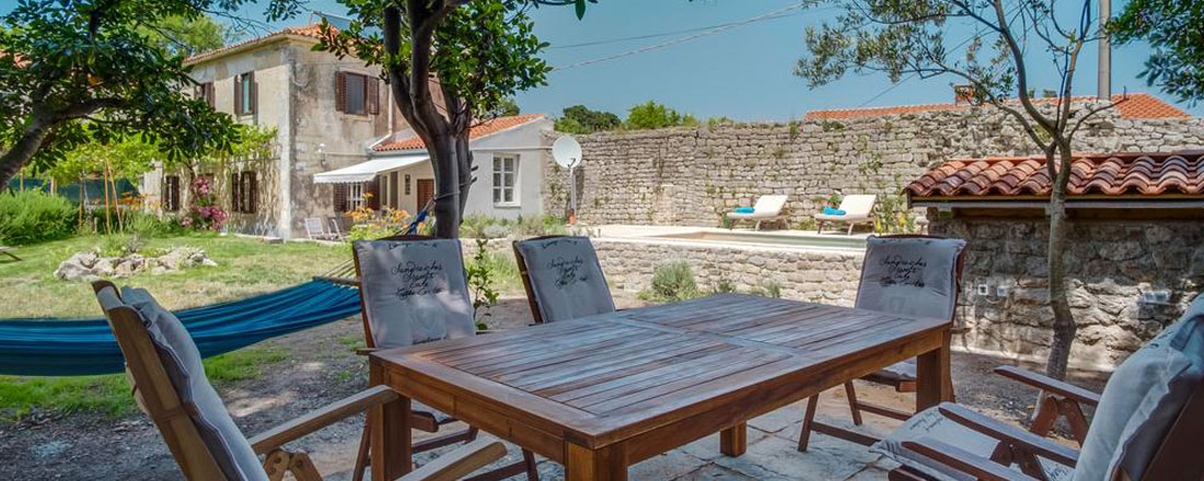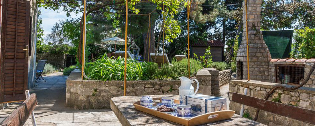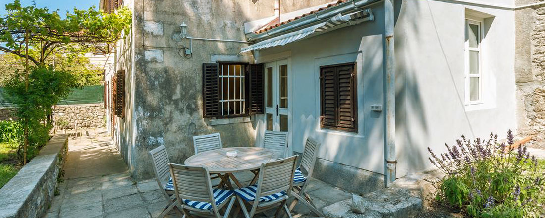 Villaen er placeret på en ca. 660m2 privatgrund ca. 250m fra havet i den lille by Osor. En antik væg fra venetianske æra danner den østlige grænse af have og er samtidig en del af byens gamle mure, mens den sydlige grænse er en antik væg fra romertiden. Disse mure skaber en god ro og masser af privatliv i den lidt vilde have. I haven kan man nyde skyggen fra de gamle fyrretræer, se bugten med sejlbåde i baggrunden, eller måske bare gå en tur til stranden, Der sejles til fastlandet (Brestova) fra fra færgehavnen Porozina, der ligger en times kørsel fra huset.