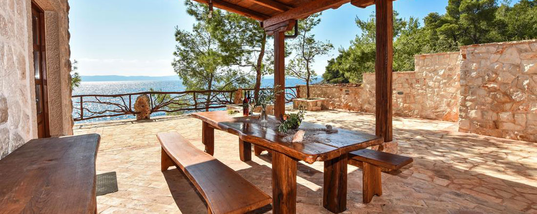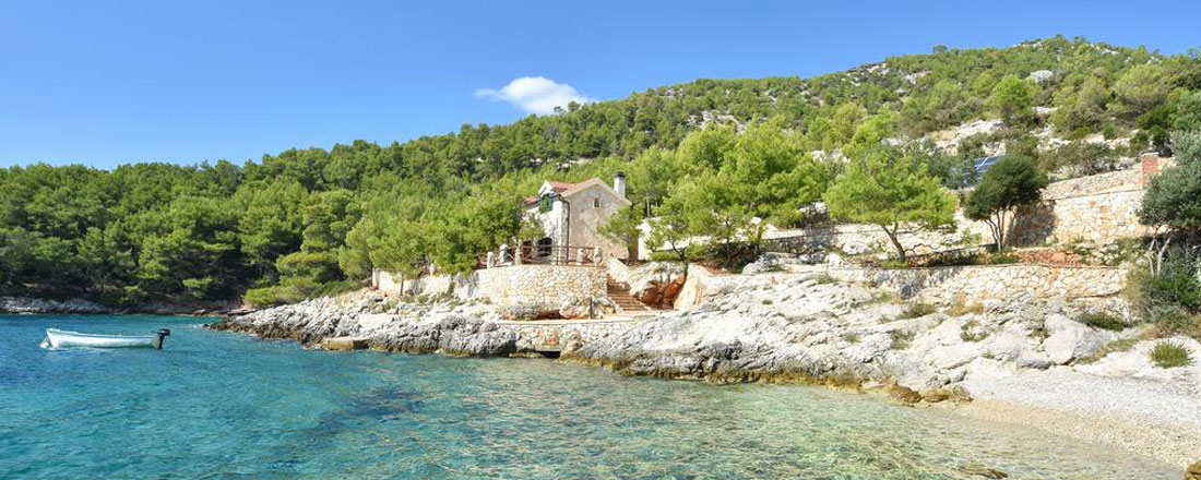 Nær Zastrazisce - midt på sydkysten af øen Hvar - ligger dette skønne, rustikke feriehus. Hvis naturen og nærhed til havet er et ønske så finder man ikke et bedre sted! Det er i absolut første række til stranden med en panoramaudsigt ud over det sædvanlige. Golubinka bugten er fantastisk smuk og indbydende til at bade i. Huset er bygget i original kroatisk sandstenarkitektur med grove træmøbler og en indretning i landlig stil. Alligevel byder villaen på alle moderne bekvemmeligheder. Villaen gennemgik en stor modernisering i 2016. For foden af grunden ligger stranden, (sten/grusstrand) med det krystalklare vand, der indbyder til en frisk dukkert.