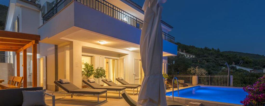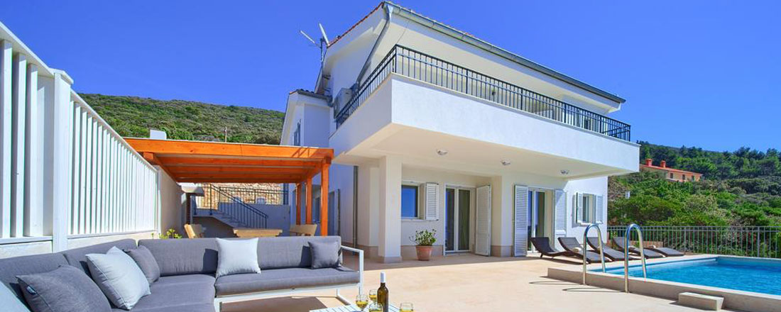 En sjælden og helt uimodståelig beliggenhed med direkte udsigt over havet på øen Cres. Villaen er fantastisk og er designet på flere niveauer, som er med ti at give en spændende indretning. Den flotte have byder på opvarmet pool og en unik panoramaudsigt med de smukkeste solnedgange. Der er kun få skridt til den lille strand foran villaen, som giver en særlig følelse af fred, frihed og uendelig med plads. Stranden ligger perfekt i en naturlig lagune med det klareste havvand. Lagunen beskytter og giver roligt vand ved stranden. Villaen er på alle måder det perfekte feriested.