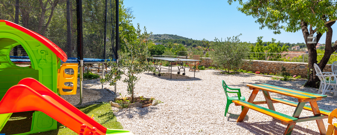 Til huset hører en vidunderlig udendørs oase af en have. Når man åbner de franske døre i stueetagen smelter inde og udelivet sammen og man huset føls pludselig endnu større med udendørs loungsområde og overdækket spiseområde med BBQ faciliteter. En halv etage forskudt nedad ligger et poolområdet med liggestole. Poolen er 25m2 og ca. 1,60m dyb. Om aftenen kan poolens projektører tændes og giver særlig børn en magisk oplevelse. Går man istedet en halv etge op er der et super legeområde for børn med bl.a. bordtennis. Der er sengelinned og håndklæder inkl. - disse skiftes 1 gang ugentlig. Der er parkering i området. Hele huset har aircondition, centralvarmesystem, samt wifi.